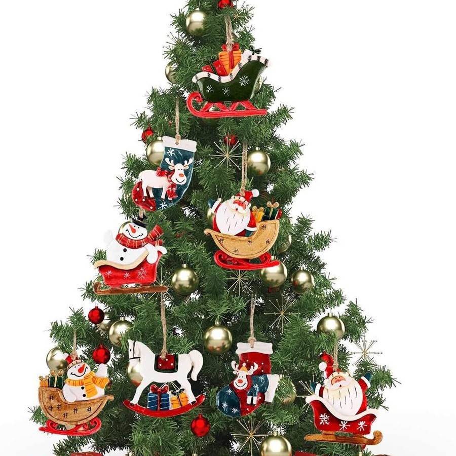 Рождественские елочные украшения выполнены из натурального дерева с использованием экологических красок.