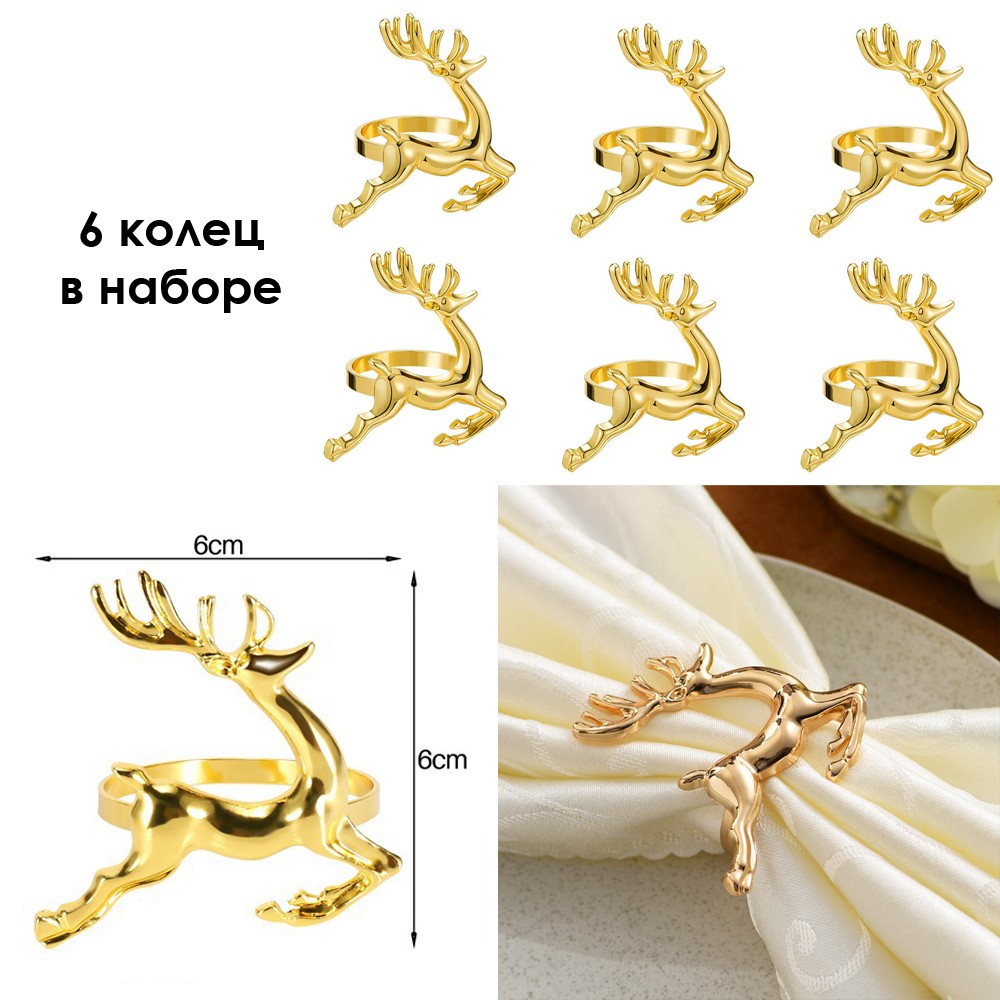 Набор из 6 колец для салфеток в виде оленя отлично подходит для придания завершающего эффекта сервировке стола.