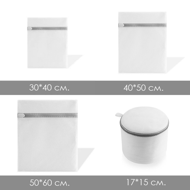 В набор входят три мешка на застежке молнии разного размера и специальный мешок-цилиндр, который предназначен для нижнего белья.