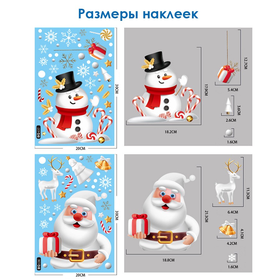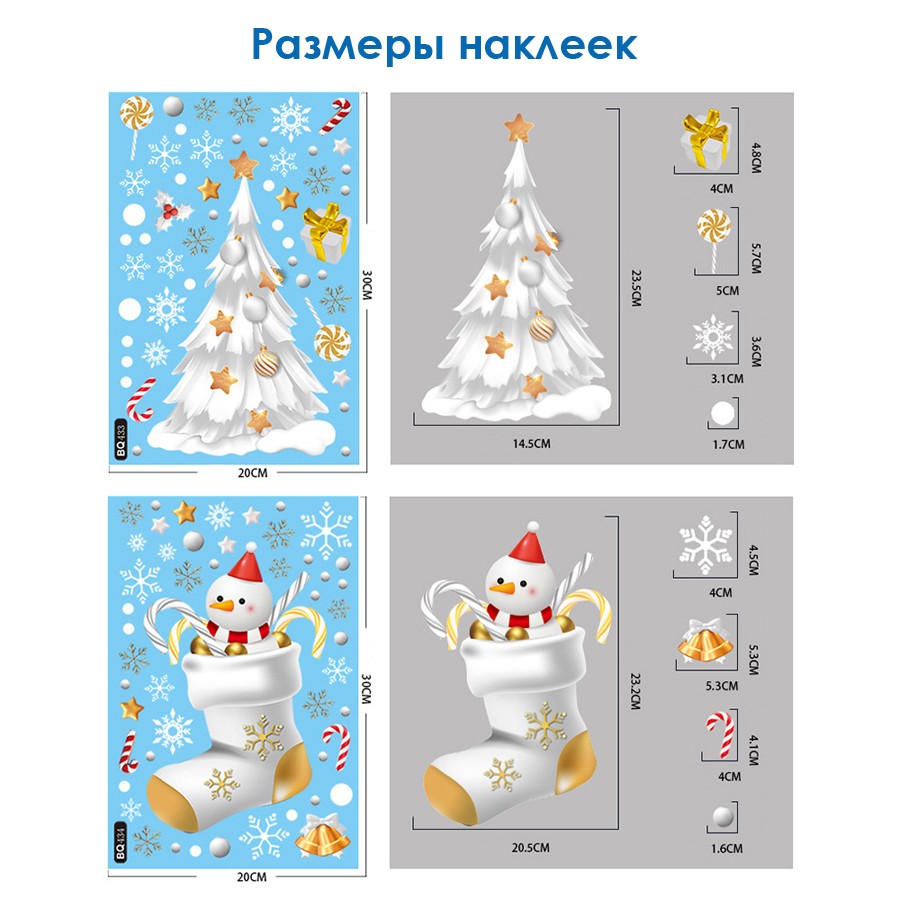 Наклейки на окна композиция "Елка/Носок/Снеговик/Санта" 176 элементов 4 листа 20*30 см. Многоразовые, Без клея (Статические) BQ433
