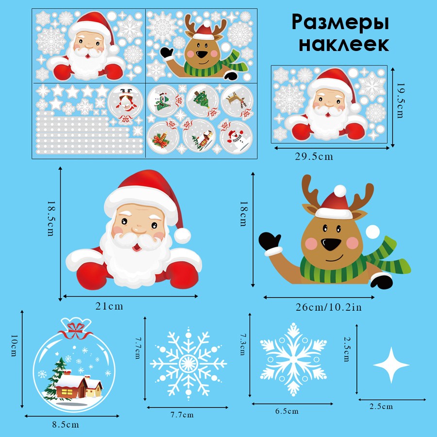 Новогодние наклейки не содержат клеевой слой, крепятся к поверхности посредством статического эффекта, благодаря этому являются многоразовыми.