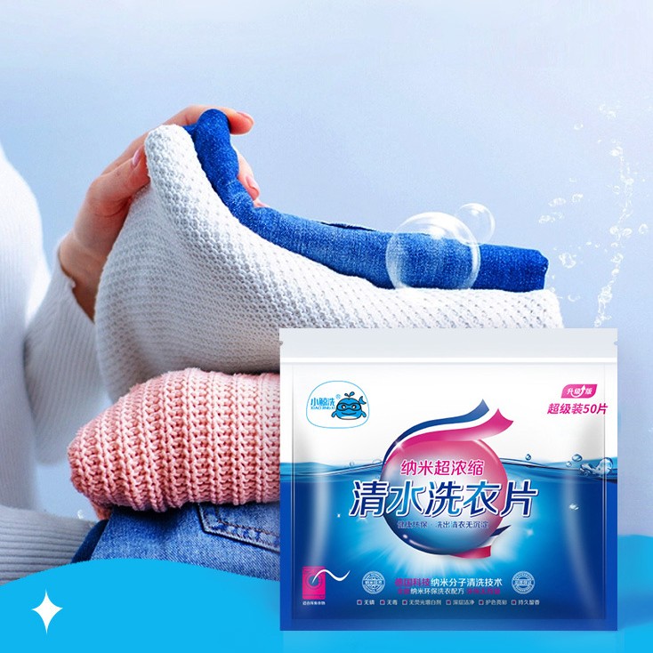 Это средство для стирки представляет собой прямоугольную пластину, пропитанную высококонцентрированным средством.