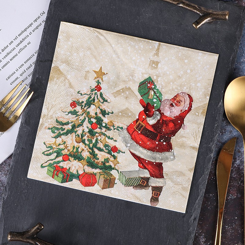 Праздничные бумажные салфетки выполнены из отличной трехслойной целлюлозы, благодаря которой салфетки прочные, мягкие, приятные на ощупь.