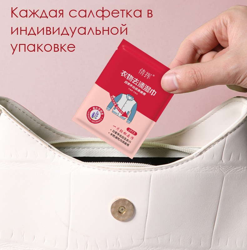 Каждая салфетка поставляется в индивидуальной упаковке, что делает их очень удобными для использования дома или в поездке. Благодаря компактному формату, вы сможете взять их с собой в любое место!