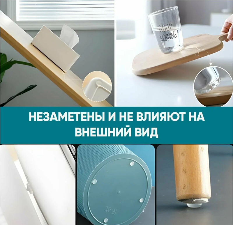 - Многофункциональность. Эти накладки могут использоваться не только для защиты мебели, но и для предотвращения скольжения предметов по поверхности. Вы можете приклеить их на ножки стульев, чтобы предотвратить их скольжение на гладком полу, или на дно предметов, чтобы предотвратить их царапину на столешнице.