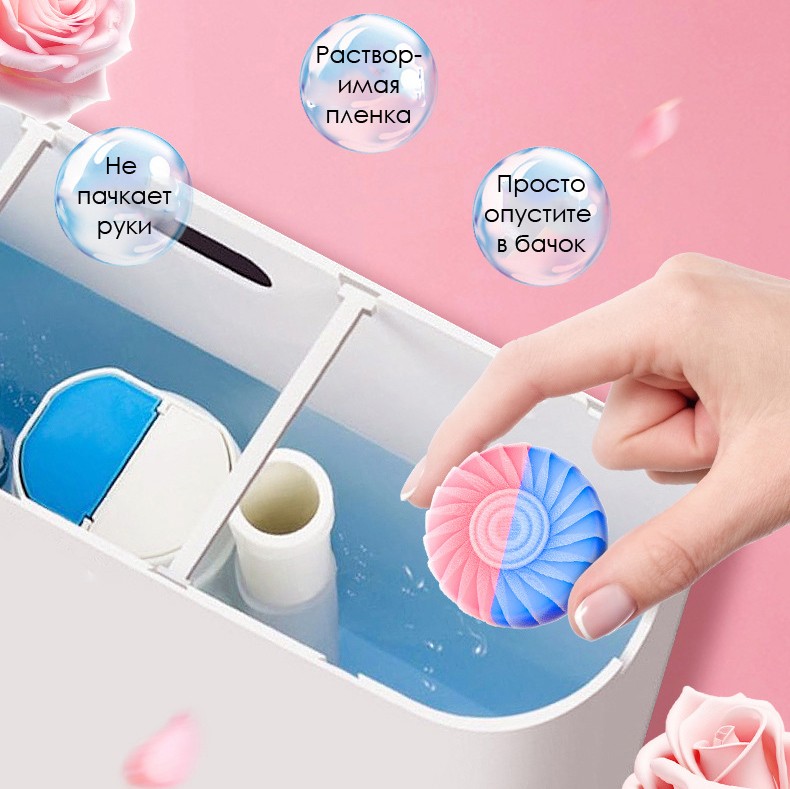 Способ применения: Просто бросьте одну таблетку в бачок унитаза, и она сама справится с задачей, обеспечивая длительное действие и приятный аромат.