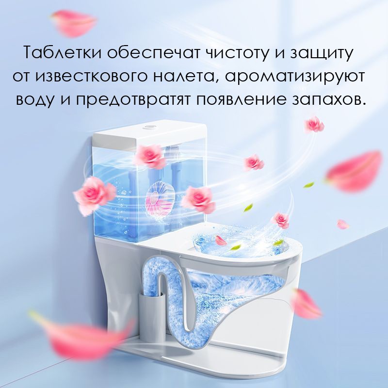 Таблетки обеспечат максимальную чистоту и защиту от известкового налета, ароматизируют воду и предотвратят появление неприятных запахов.