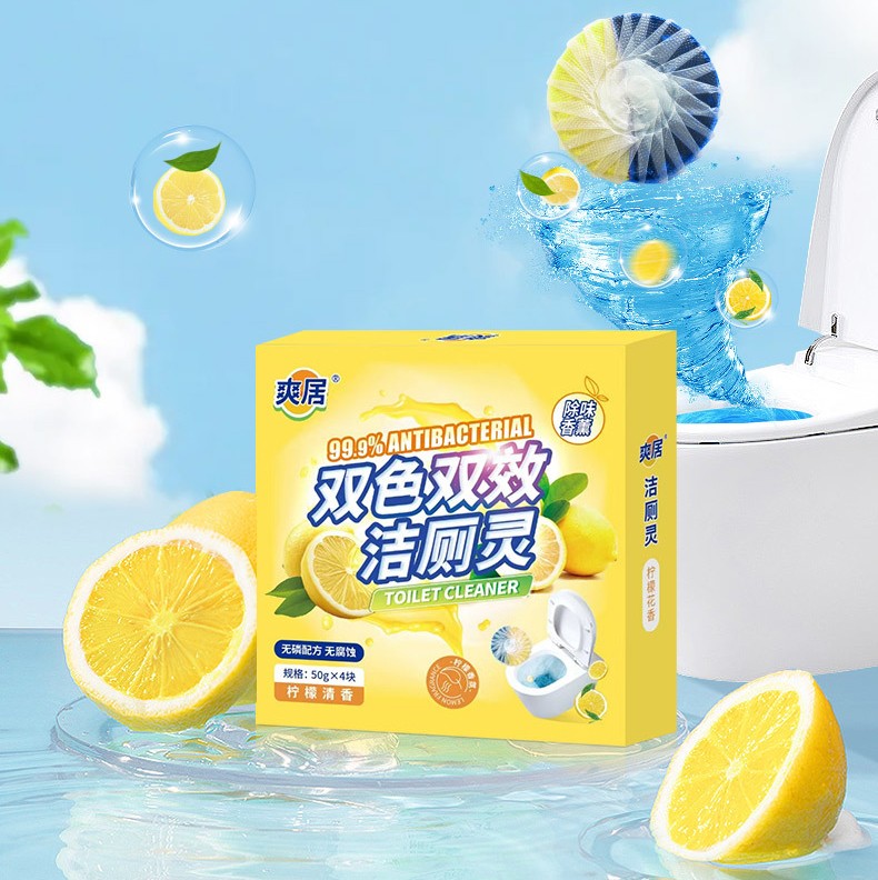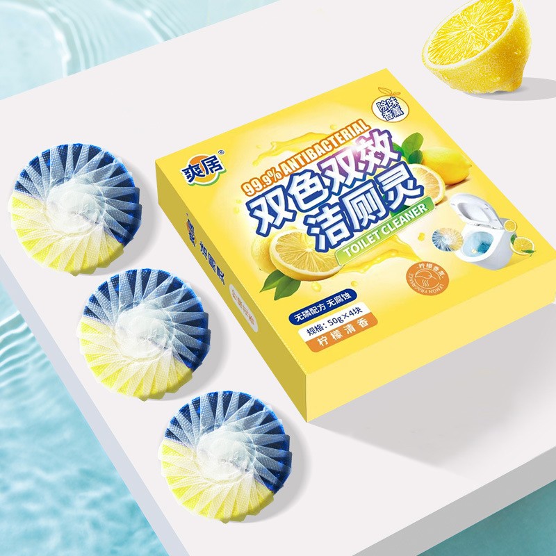 Таблетки очищающие для сливного бачка унитаза ЛИМОН, набор 4 шт. по 50 гр.