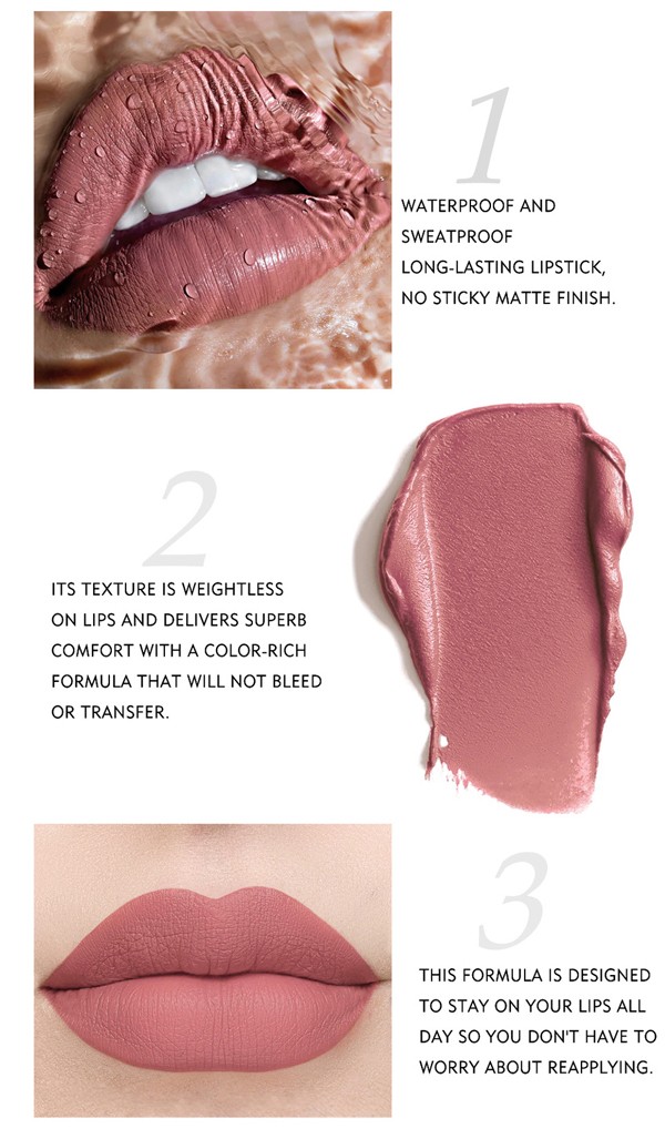 Набор жидких матовых помад с инновационной формулой, которая скользит по губам, как блеск, но высыхает до ультраматовой текстурой.