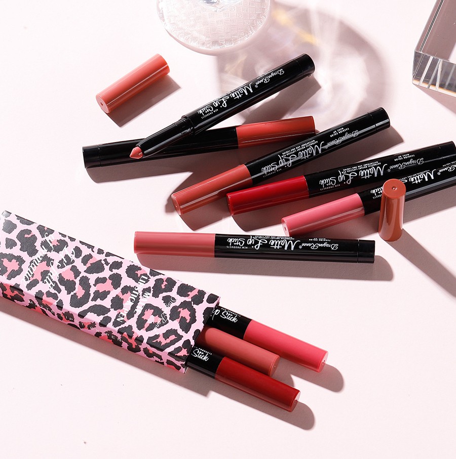Матовая помада в стике с бархатистой текстурой и высокой стойкостью.