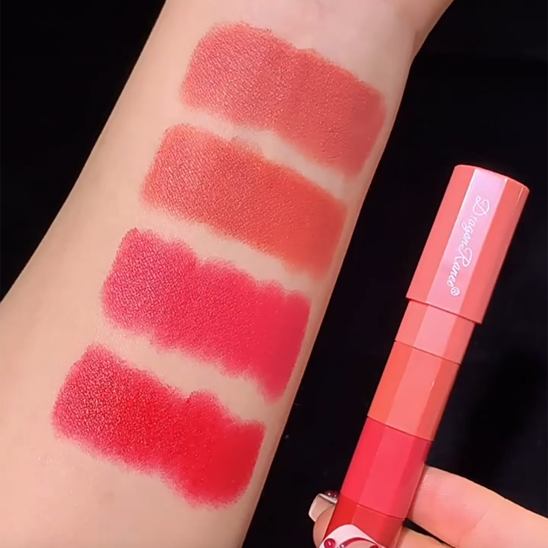 Набор мини-помад для губ 4 в 1 в формате карандаша обеспечивает легкое нанесение и стойкий цвет.