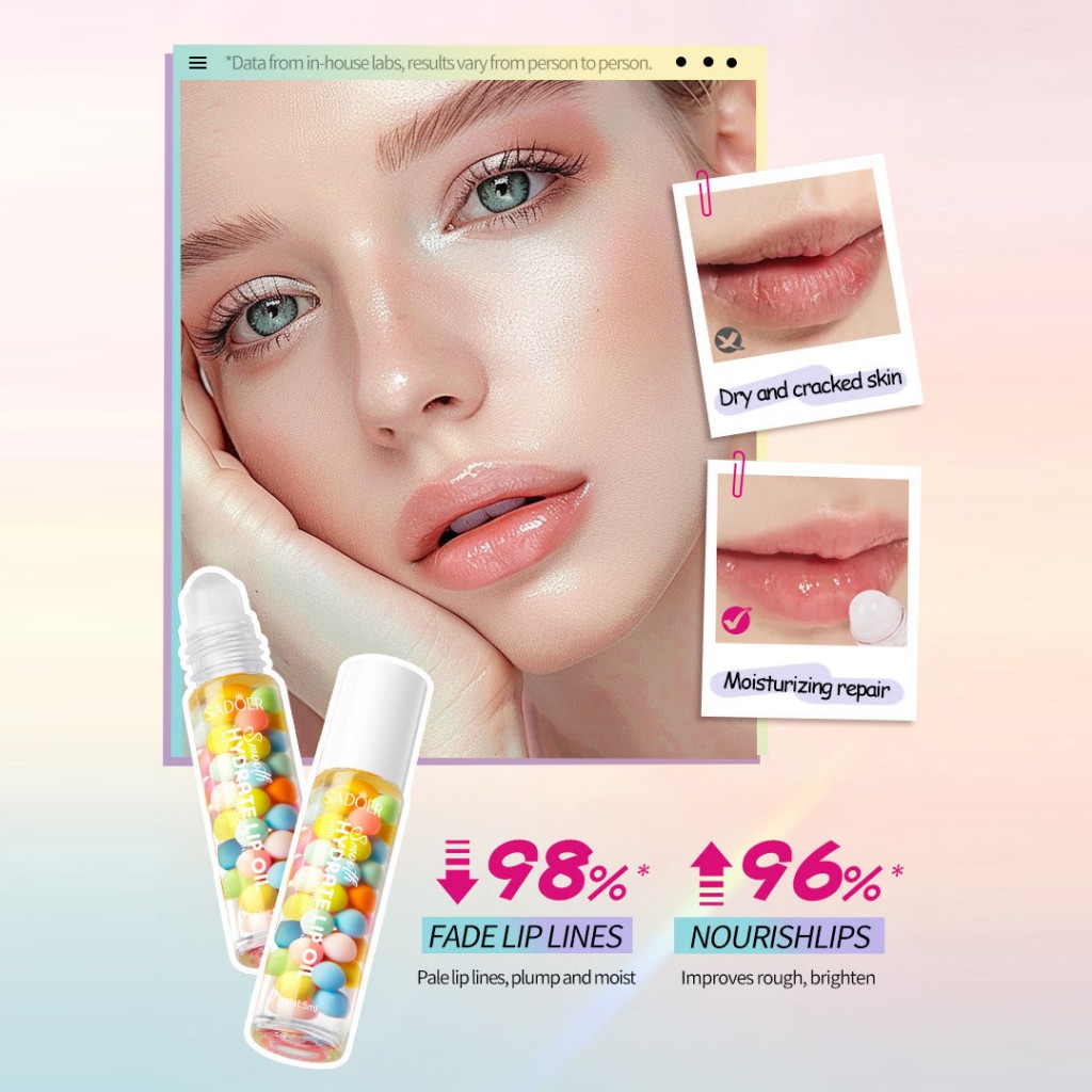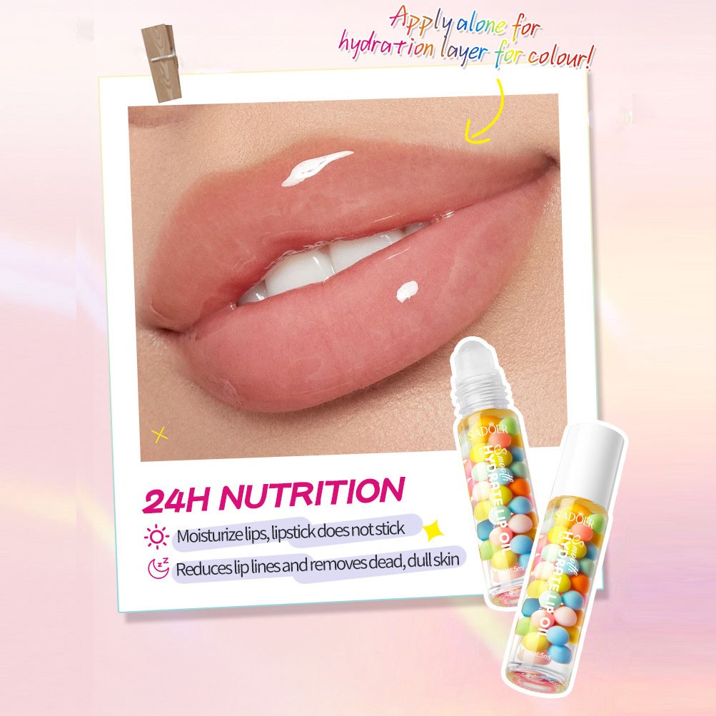 Увлажняющее масло для губ SADOER с цветными шариками мгновенно увлажняет, борется с шелушением и сухостью, а также придает губам естественный оттенок и здоровое сияние.