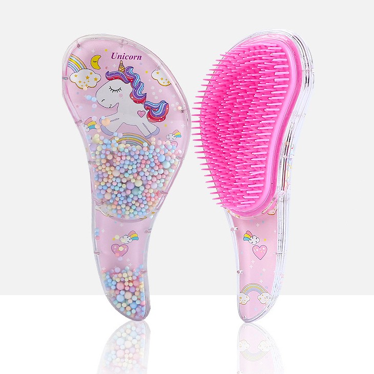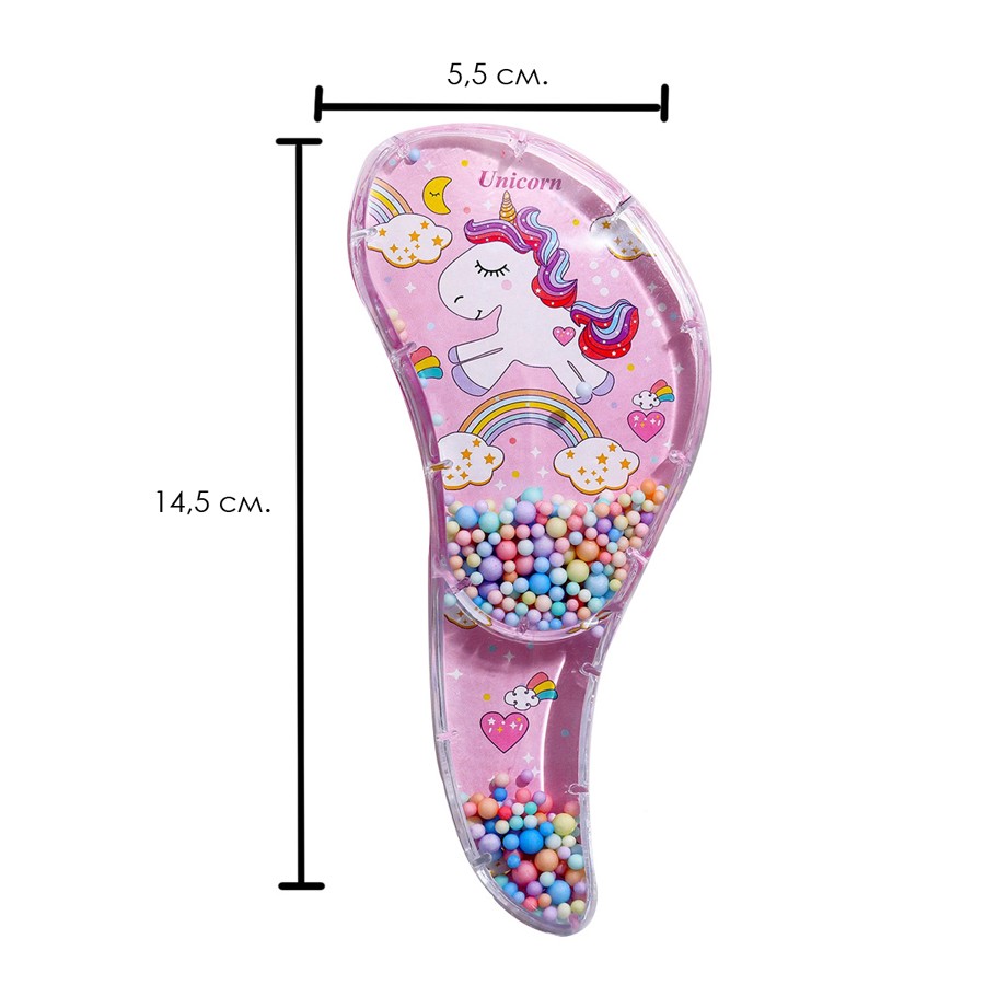 Расческа имеет привлекательный дизайн. Внутри украшена движущимися разноцветными шариками.