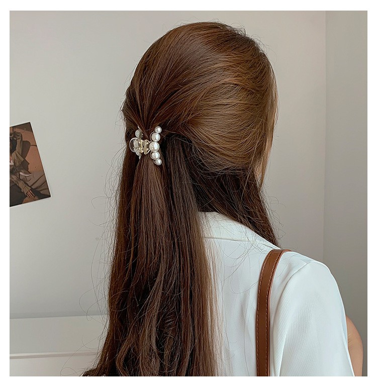 Заколки-крабики для волос маленькие пластиковые из бусин в виде жемчуга - милые и красивые женские аксессуары для создания прически.