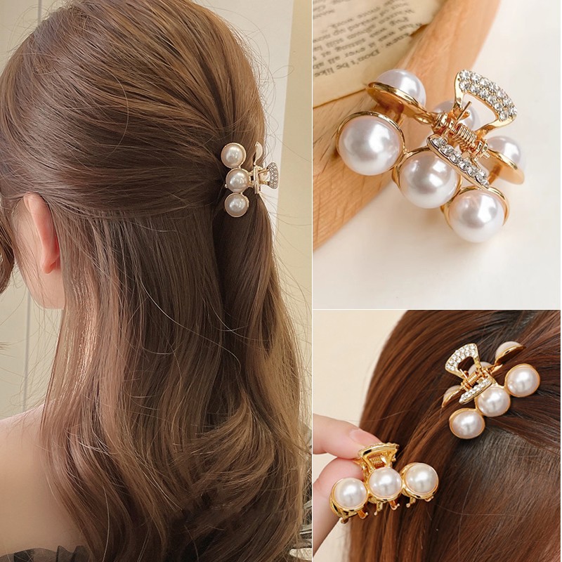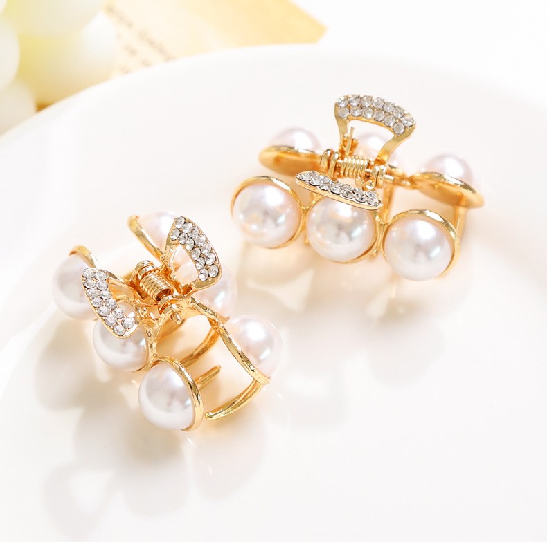 Заколка состоит из прочного бижутерного сплава, украшена жемчужными бусинами и стразами.