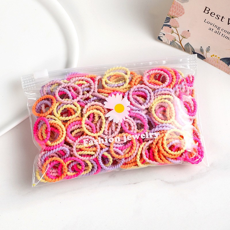 Набор резиночек для волос 100 шт. в косметичке с Ромашкой, диаметр 2 см. РАЗНОЦВЕТНЫЕ