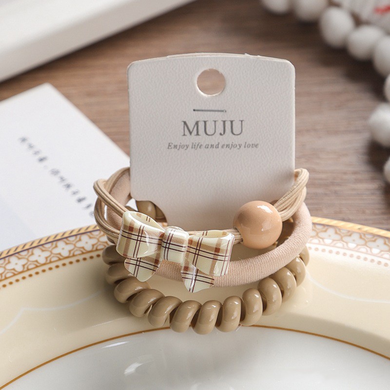 Набор резинок для волос 3 шт. бежевые (Пружинка, Тканевая, БАНТИК с шариком)