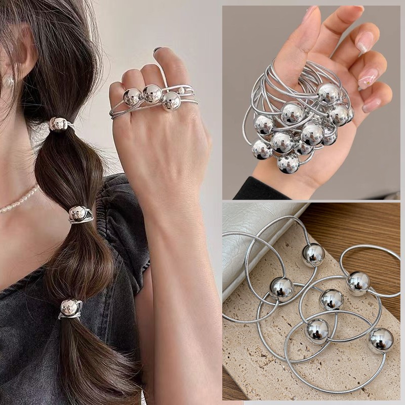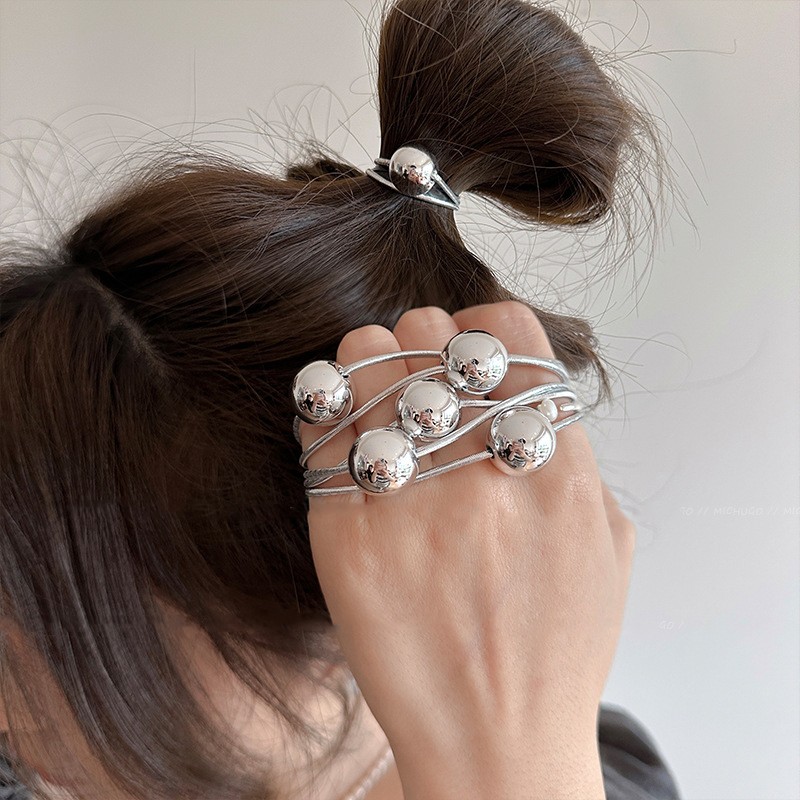 Набор резинок для волос 5 штук с шариком СЕРЕБРО