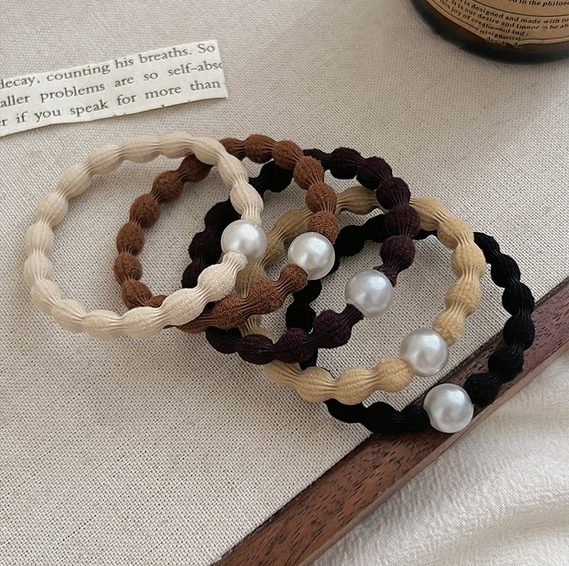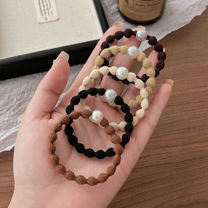 Набор резинок для волос волнистые с жемчужной бусиной 5 штук
