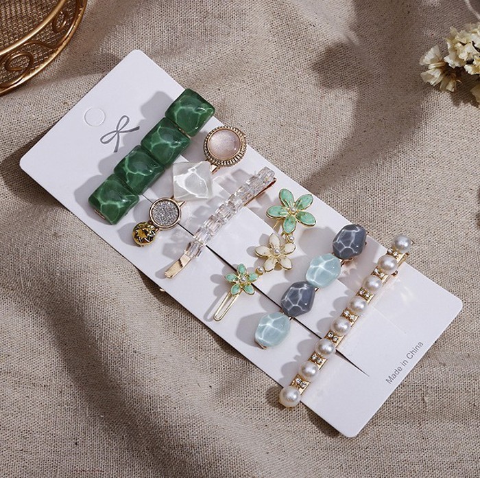 Набор заколок для волос 6 шт. Цвет: Изумруд/Белый