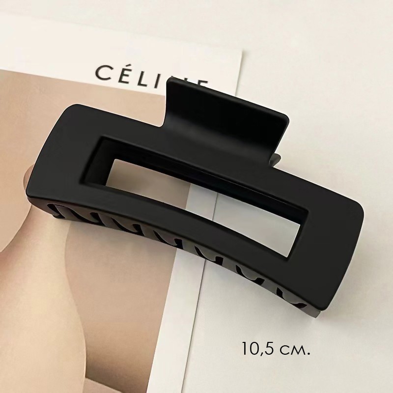 Заколка-краб для волос матовый Черный ПРЯМОУГОЛЬНЫЙ 10,5 см.