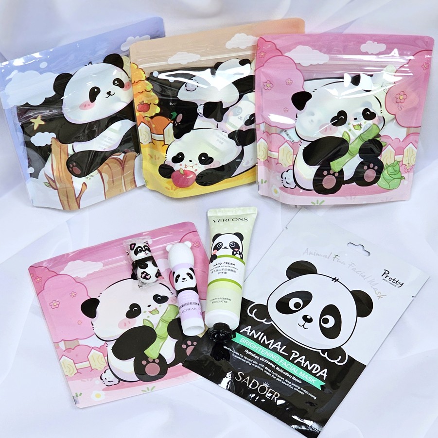 5. Красивый подарочный пакет на застежке-молнии с рисунками панды.