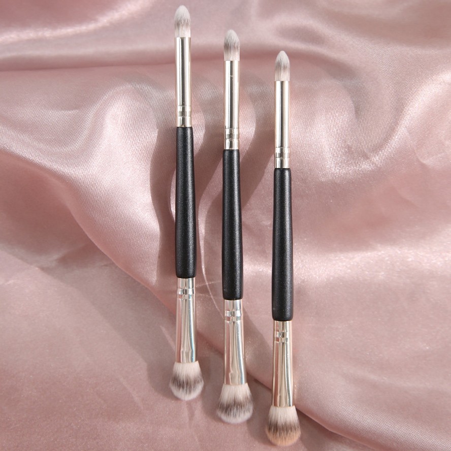 Двусторонняя кисть для макияжа станет лучшим помощников в вашей косметичке для нанесения и растушевки теней, для расстановки акцентов, для нанесения и растушевки сухих, кремовых продуктов для глаз и бровей.
