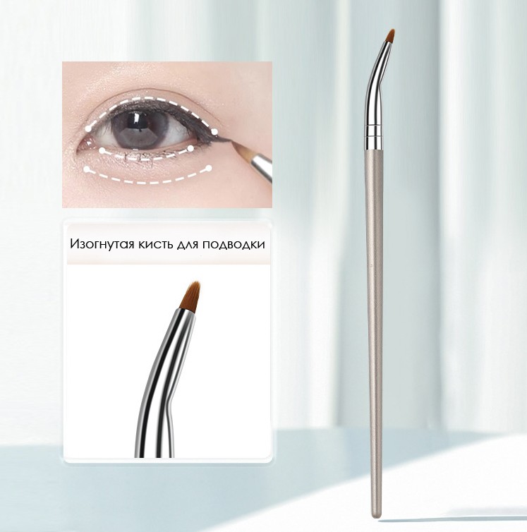 Инновационная кисть для подводки века имеет изогнутый наконечник, который обеспечивает аккуратное и ровное нанесение подводки жидкой и кремовой текстуры.