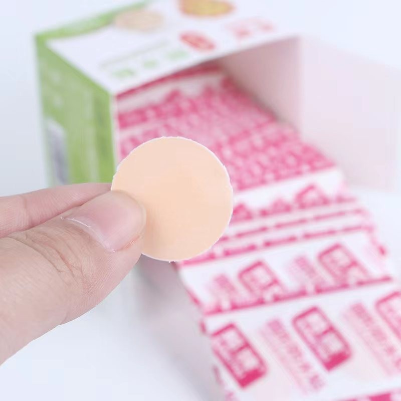Комплект включает 100 круглых пластырей диаметром 2,3 см на полимерной основе телесного цвета.
