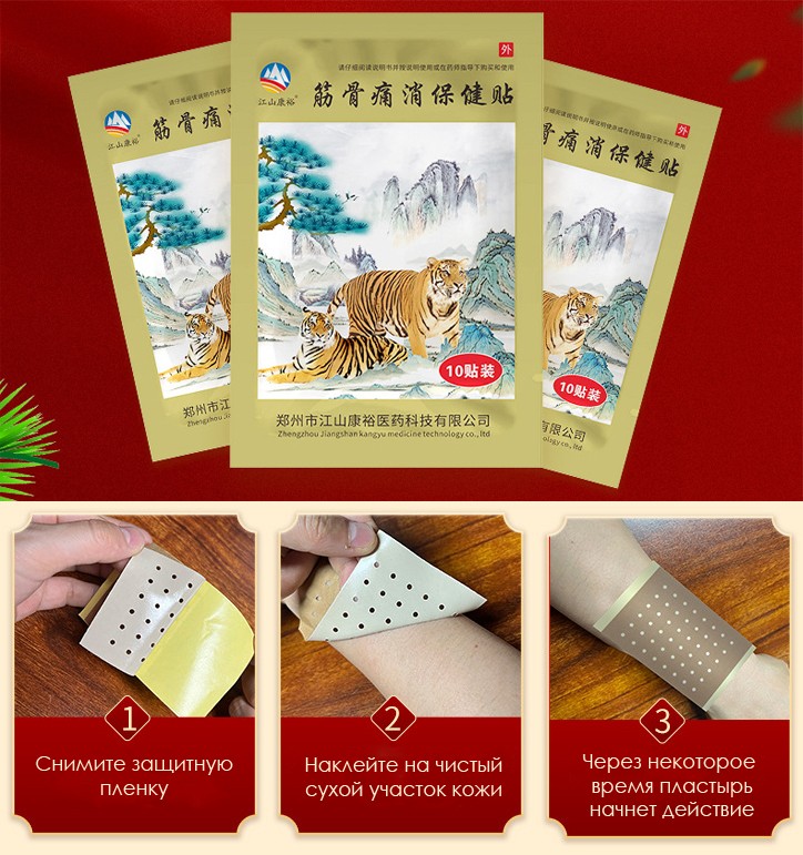 Пластырь Тигровый применяется для активизации циркуляции крови в мышцах и крупных суставах.