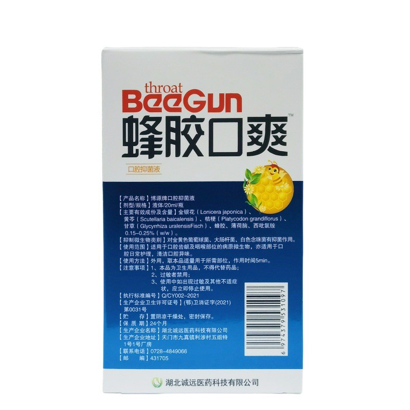 Спрей BeeGun облегчает кашель, купирует воспалительные процессы в слизистой оболочке рта, препятствует размножению бактерий, которые вызывают заболевания горла.