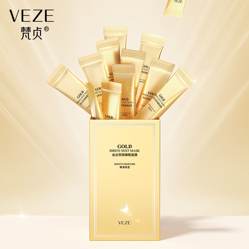 Ночная маска для лица с золотом, ласточкиным гнездом и женьшенем VEZE мгновенно освежает, восстанавливает кожу и делает ее упругой, напитанной.