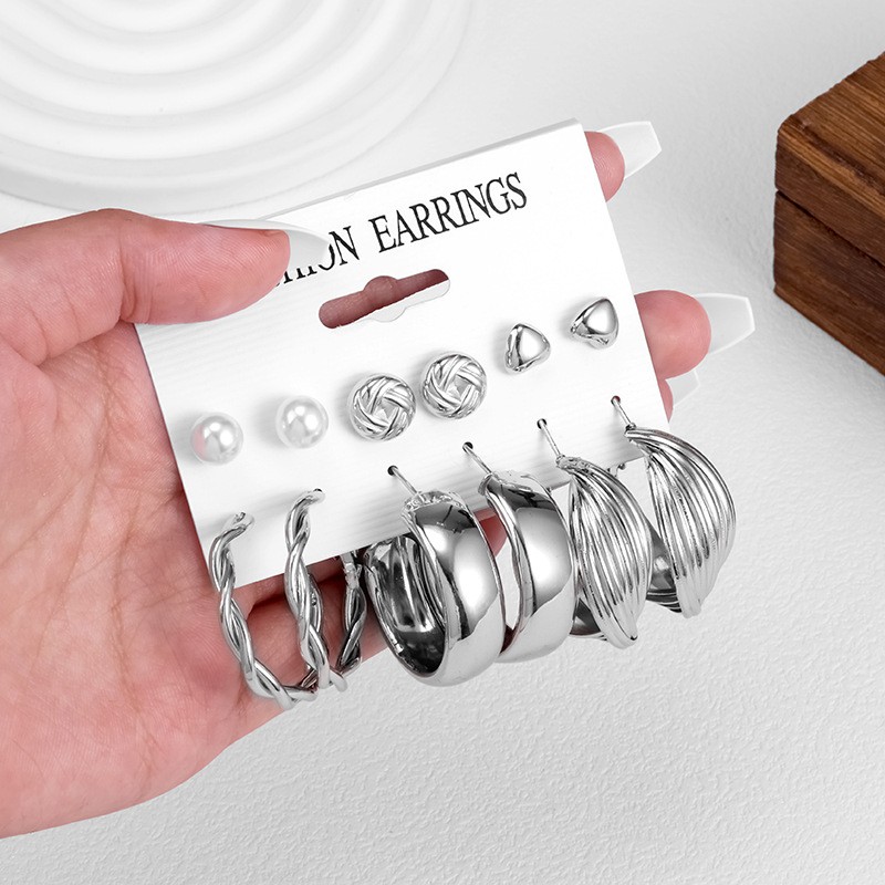 Красивый набор стильных оригинальных сережек отлично подойдет для повседневной носки и для вечерних образов.