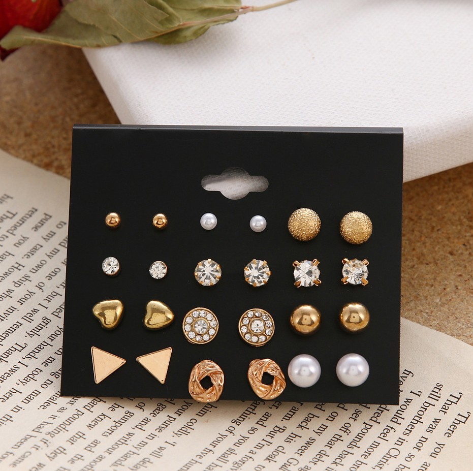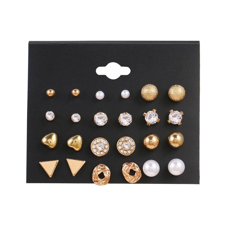 Набор сережек-гвоздиков 12 пар. Цвет: Золото
