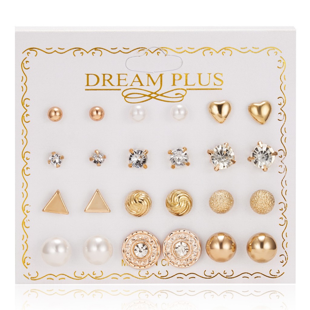 Набор сережек-гвоздиков 12 пар. Цвет: Золото