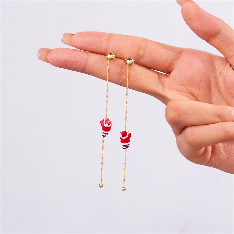 Эти изысканные серьги украшены яркими вставками из ювелирного стекла, имитирующими фигурку Санты.