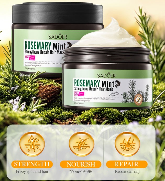 Интенсивное восстановление и укрепление волос с натуральным экстрактом розмарина.