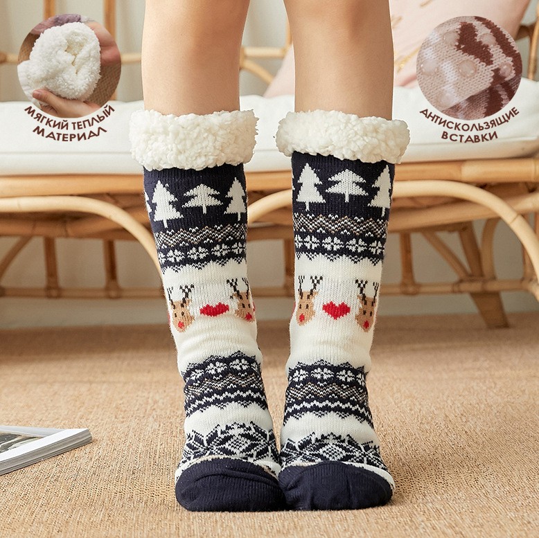 Носки украшены ярким и оригинальным новогодним рисунком, что делает их идеальным подарком на Новый год и Рождество маме, сестре, дочери, подруге, коллега, девушке.