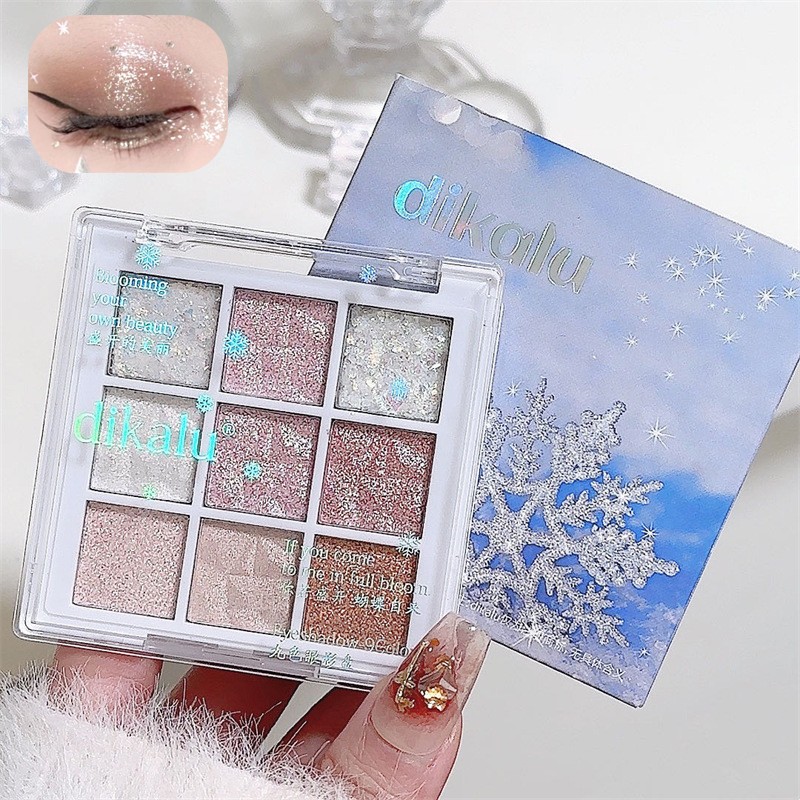 Палетка мерцающих теней Dikalu 9 цв. Снежинки