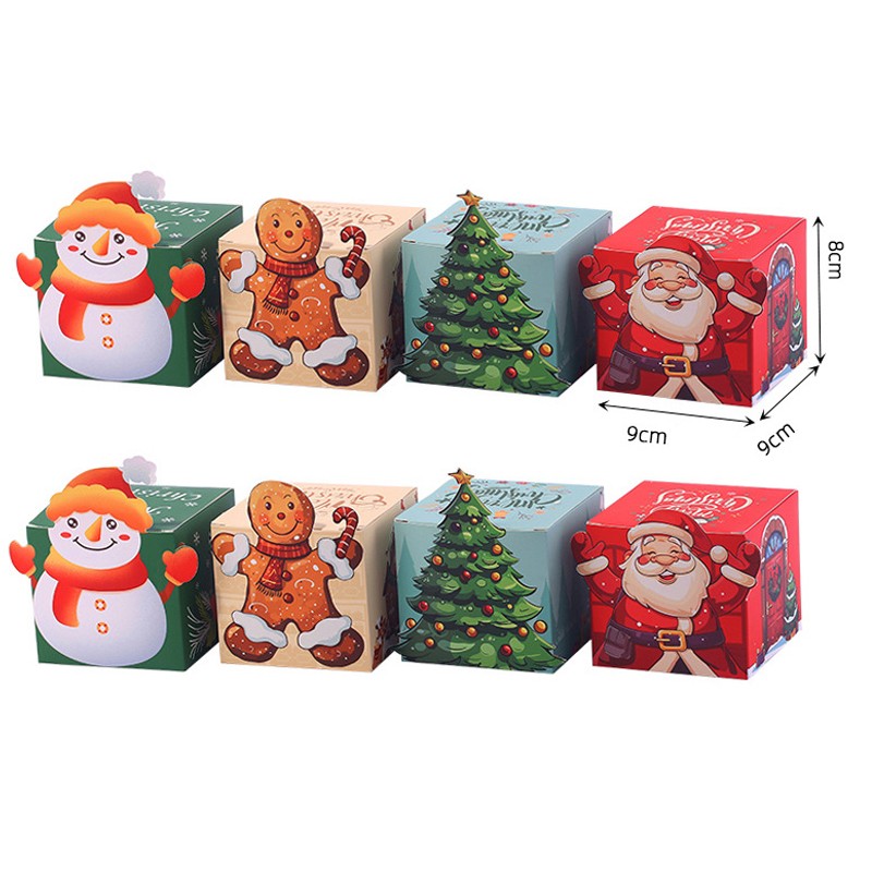 В комплекте: 8 коробок подарочные новогодних складных. (По 2 штуки каждого дизайна)