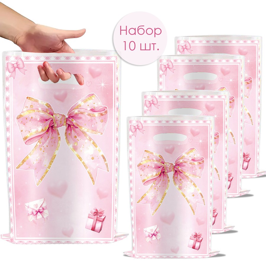 Набор пакетов подарочных 10 штук 25*17 см. Бантики
