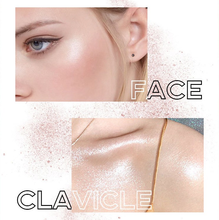 Способ применения: Нанесите хайлайтер на выступающие части лица, такие как скулы, нос, лоб и подбородок, с помощью пуховки или кисти для хайлайтера. Для более интенсивного эффекта повторите нанесение до достижения желаемого сияния. Можно использовать на тело для создания акцентов на ключицах и других зонах.