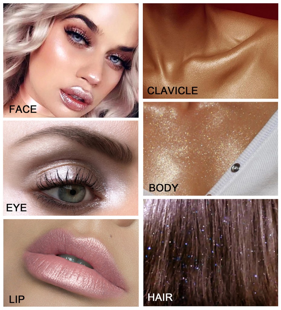 Блестки для макияжа отлично растушевываются, позволяя добиться отдохнувшего, здорового цвета кожи, создавая эффект естественного сияния.