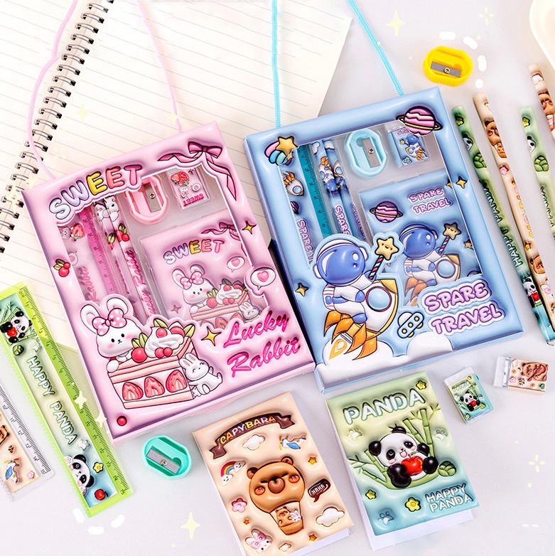 Подарочный детский канцелярский набор из 6 предметов - отличный подарок или сувенир для юных учеников.