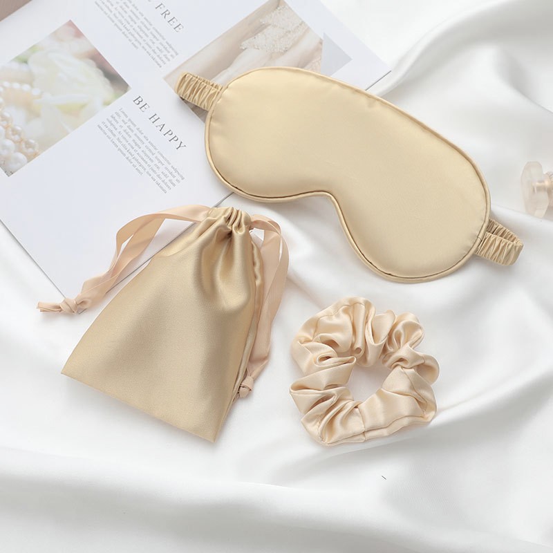 Набор: Маска для сна + Резинка для волос + Мешочек для хранения. КРЕМОВЫЙ