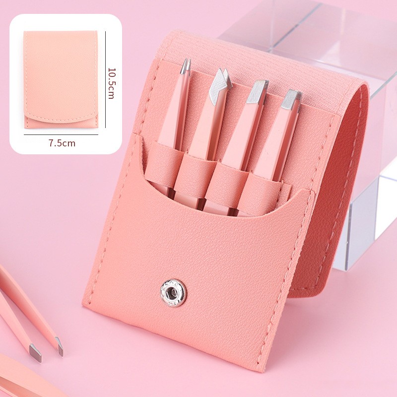 Набор пинцетов для бровей и ресниц 4 шт. в кожаном чехле. Цвет: Розовый