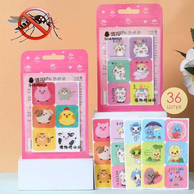 Наклейки от комаров и мошек с рисунками, набор 36 шт.