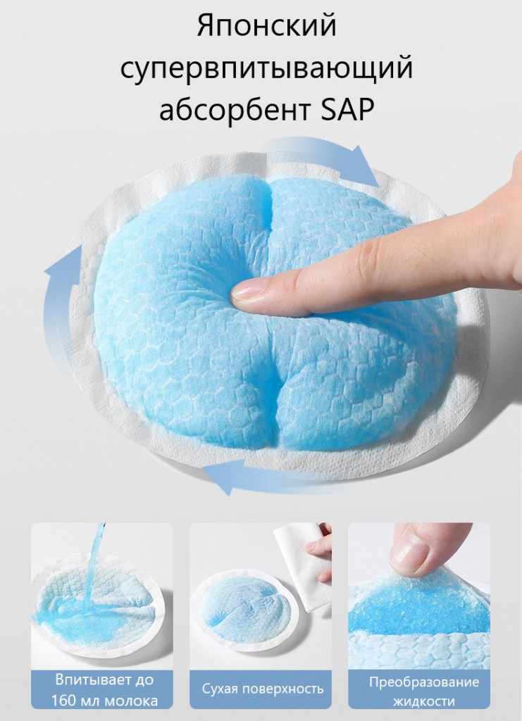 Впитывающие более 100 мл, безворсовые, мягкие вкладыши идеальны для правильной гигиены груди во время кормления.