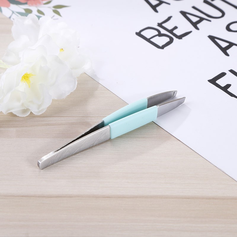 Пинцет для бровей имеет классическую форму и легкий скос линии захвата волосков.