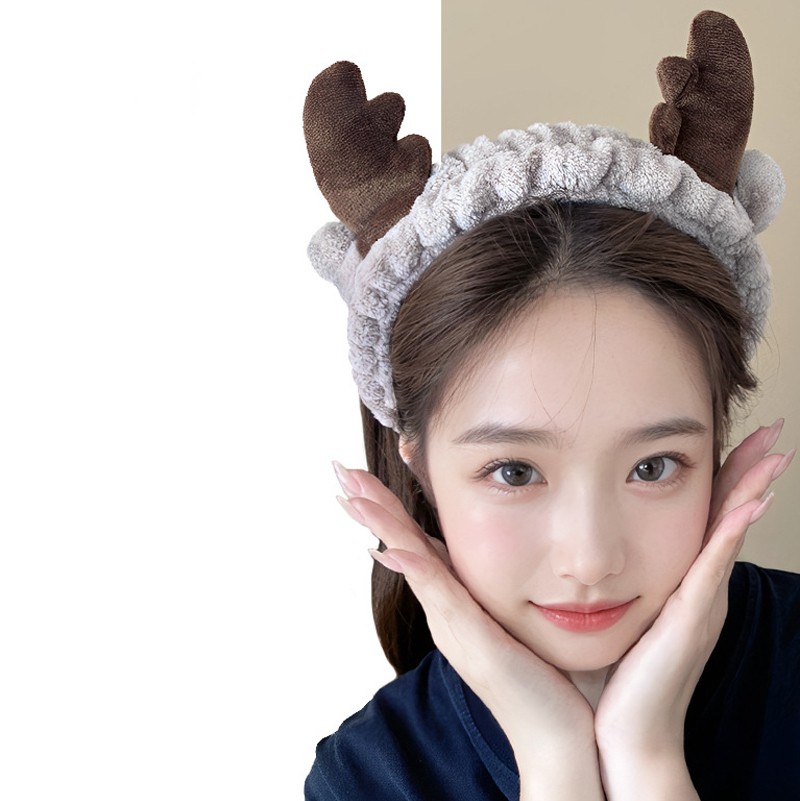 Повязка косметическая плюшевая Рожки Оленя с ушками